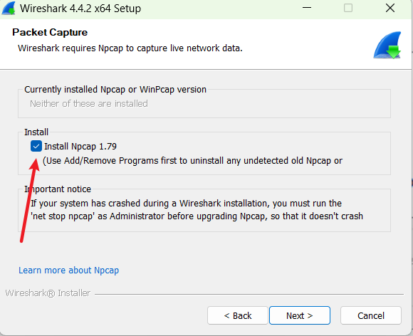 Npcap.exe也会被安装一般不用勾选任何选项。