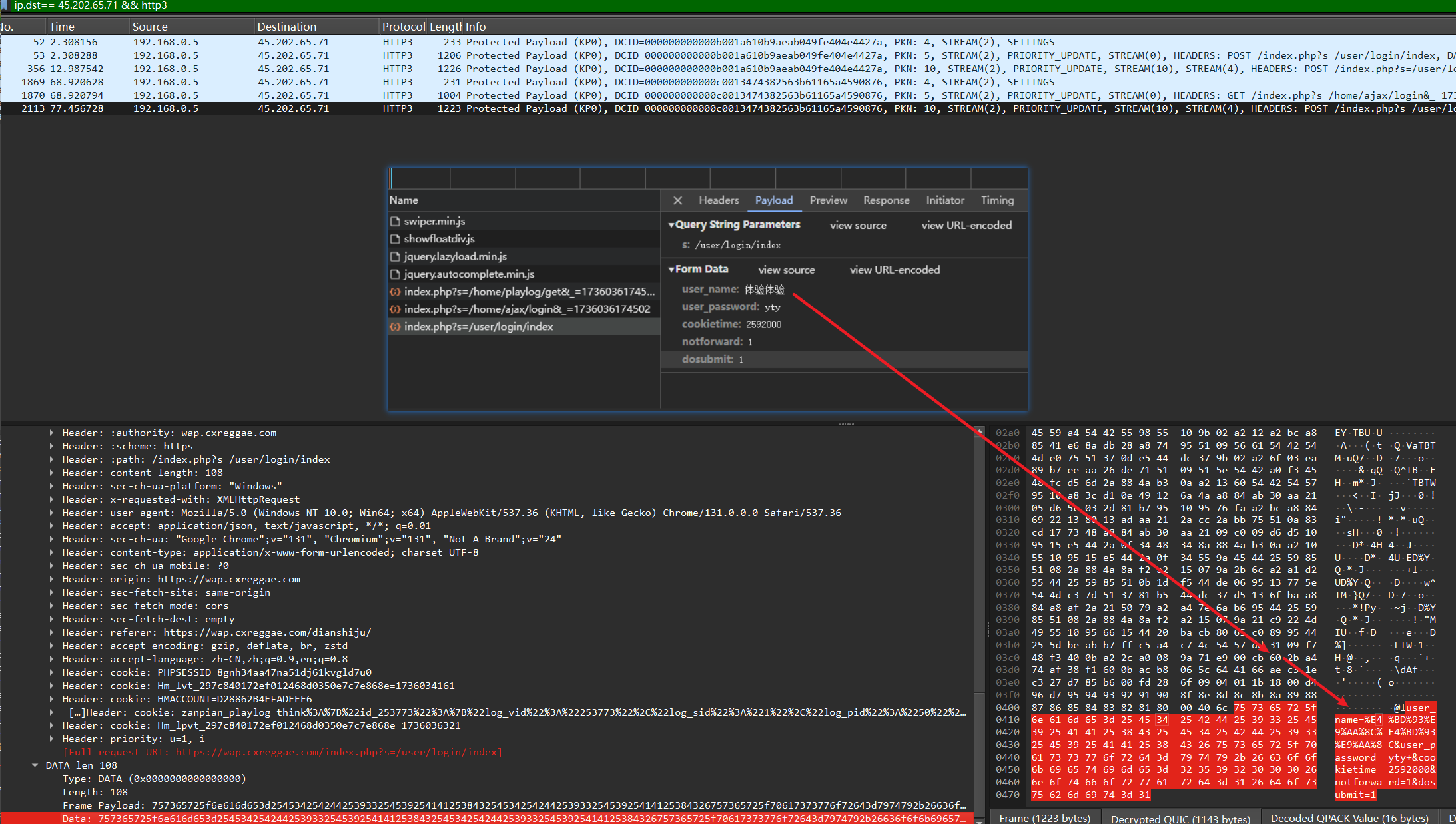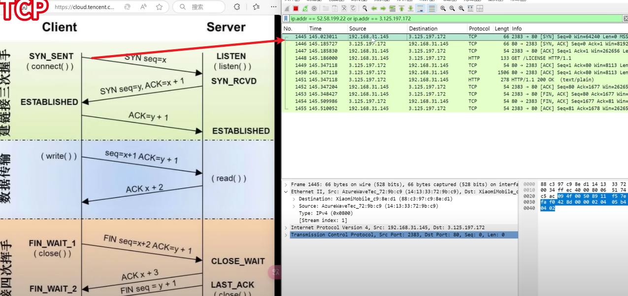在wireshark中可以看到整体过程